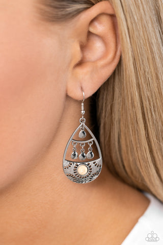 Country Cabana - White - Stone Silver Teardrop Frame Paparazzi Fishhook Earrings