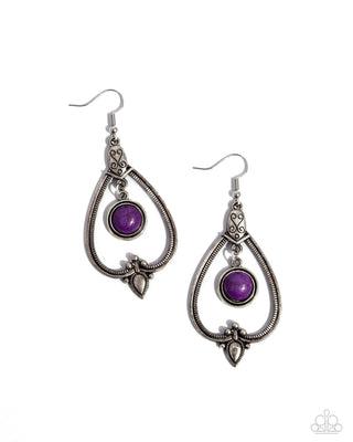 Desert Canopy - Purple - Crackle Stone Silver Leaf Paparazzi Fishhook Earrings