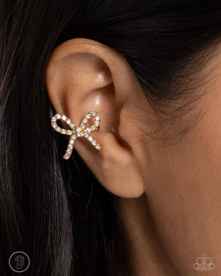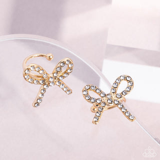 As Far As It GLOWS - White - Rhinestone Encrusted Heart Paparazzi Ear Cuff Earrings
