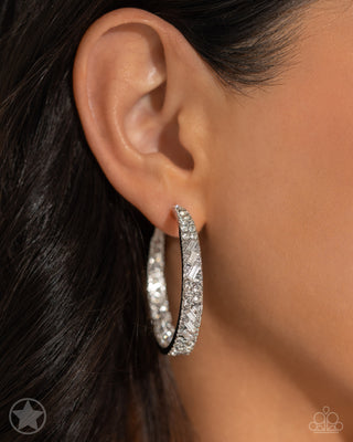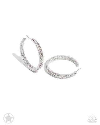 GLITZY by Association - Gold - White Rhinestone Paparazzi Blockbuster Hoop Earrings