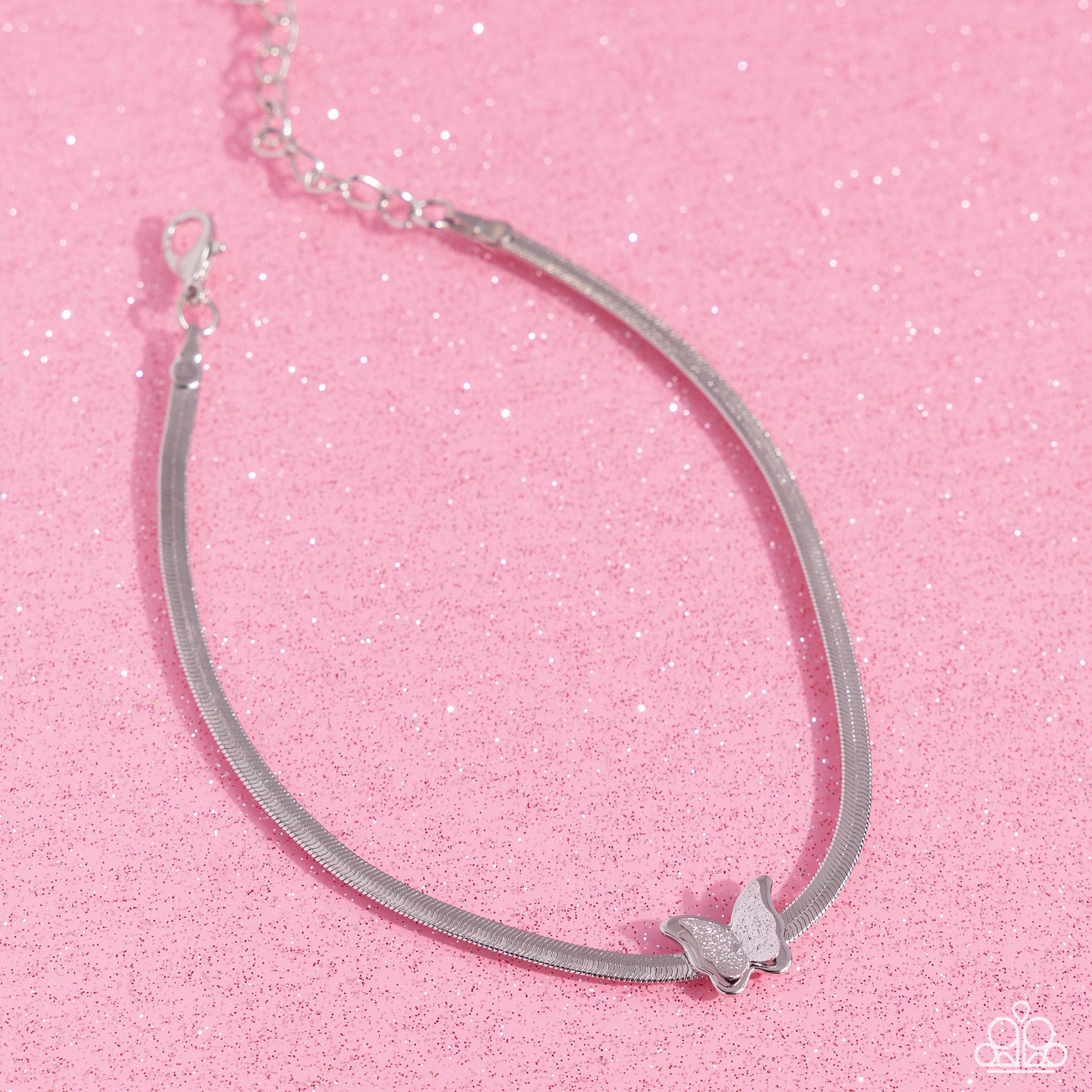 Featuring a lightly hammered texture, a dainty silver butterfly joins a sleek silver butterfly for a three-dimensional pendant that flutters atop a silver herringbone chain around the ankle for a whimsical finish. Features an adjustable clasp closure.