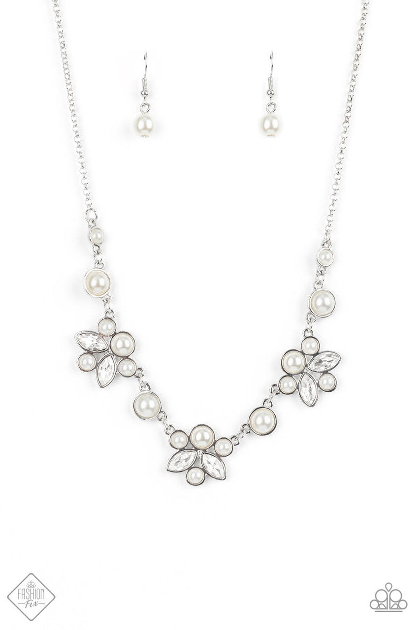 Infused with solitaire pearls, dainty clusters of bubbly white pearls and glassy white marquise style rhinestones delicately gather into clustered frames below the collar for an elegantly timeless finish. Features an adjustable clasp closure.