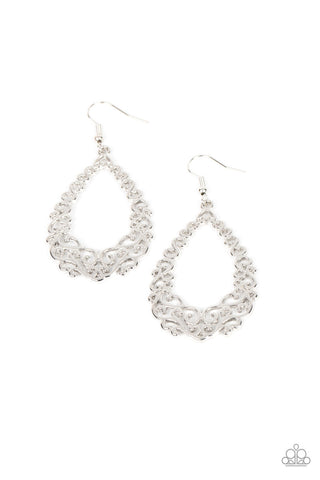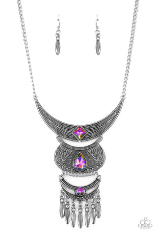 Magical Masquerade - Silver - Iridescent Pearl Teardrop Filigree Paparazzi Necklace
