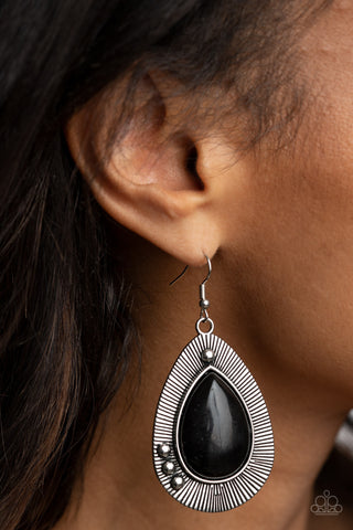 Universal Rehearsal - Black - Gunmetal Hammered Hoop Paparazzi Fishhook Earrings