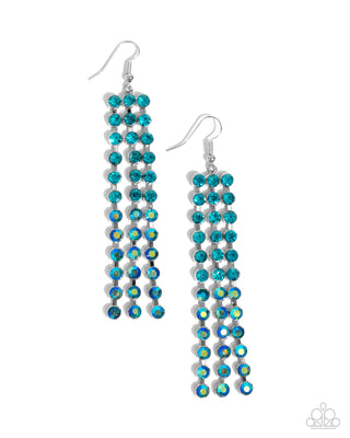 Fancy Free Fish - Green - Blue, and Iridescent Rhinestone Paparazzi Fishhook Earrings