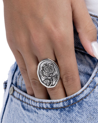 Floral Fermata - Purple - Rhinestone Rose Gold Flower Silver Band Paparazzi Ring