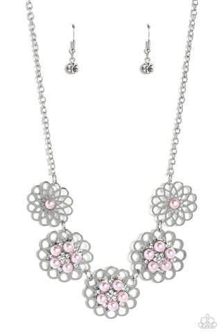 Mandala Mosaic - Pink - Pearl Center Rhinestone Filigree Flower Paparazzi Short Necklace