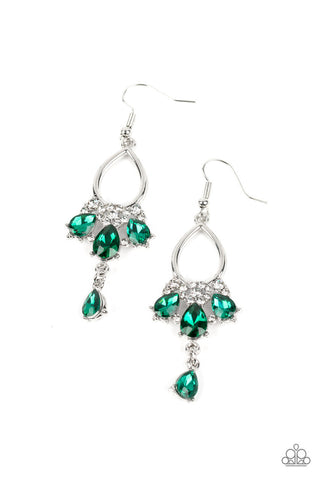 Cat's Eye Class - Green - Rhinestone Encrusted Teardrop Paparazzi Fishhook Earrings