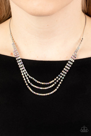 Pearly Pond - White - Pearl and Iridescent Rhinestone Paparazzi Short Necklace