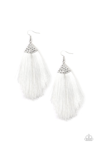 Tassel Tempo White Paparazzi Earrings