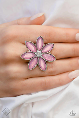 Prana Paradise - Silver - Flower Paparazzi Dainty Ring - April 2021 Glimpses of Malibu