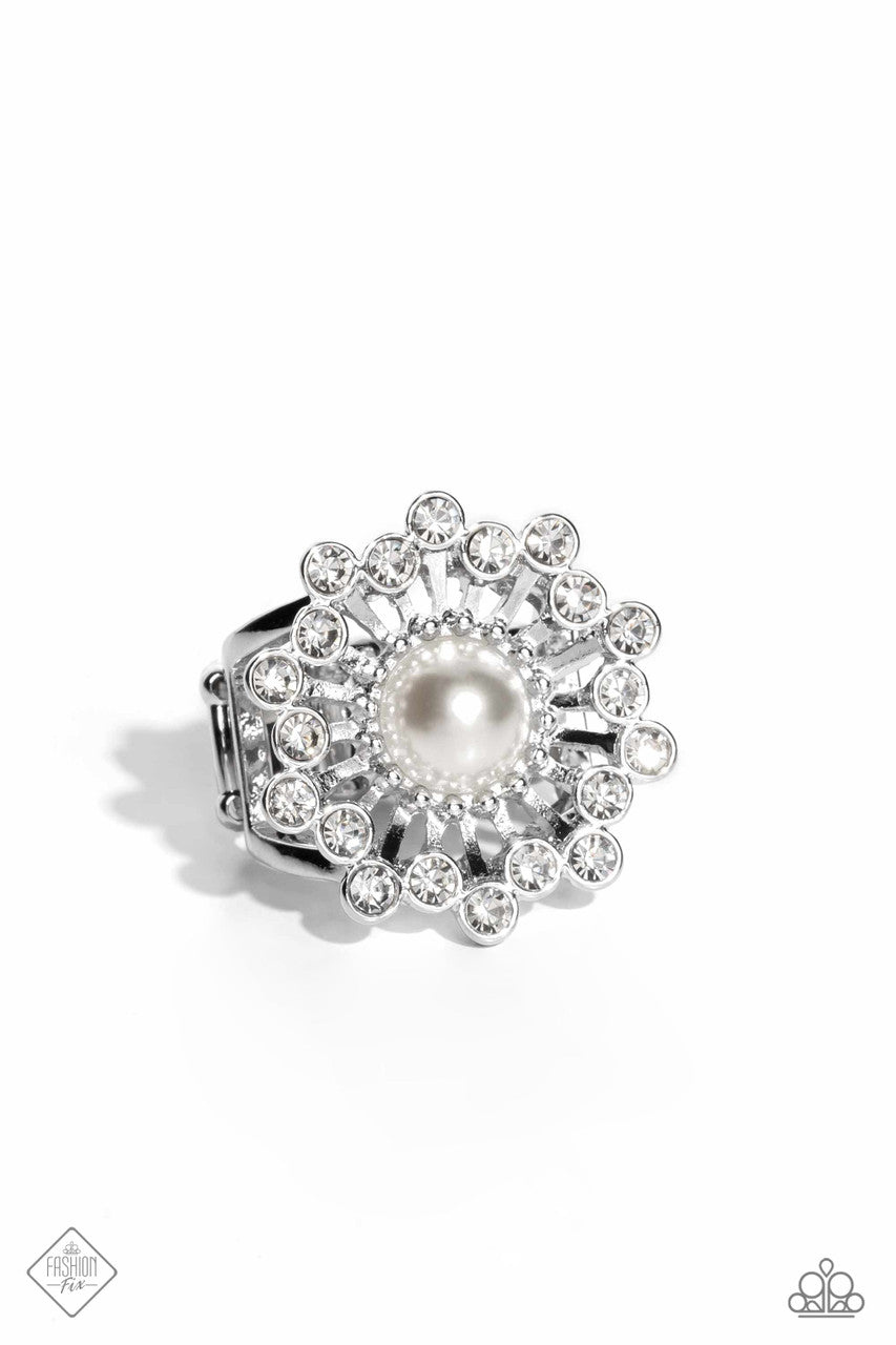 Maypole Dance - White - Pearl Center White Rhinestone Paparazzi Ring - April 2023 Glimpses of Malibu