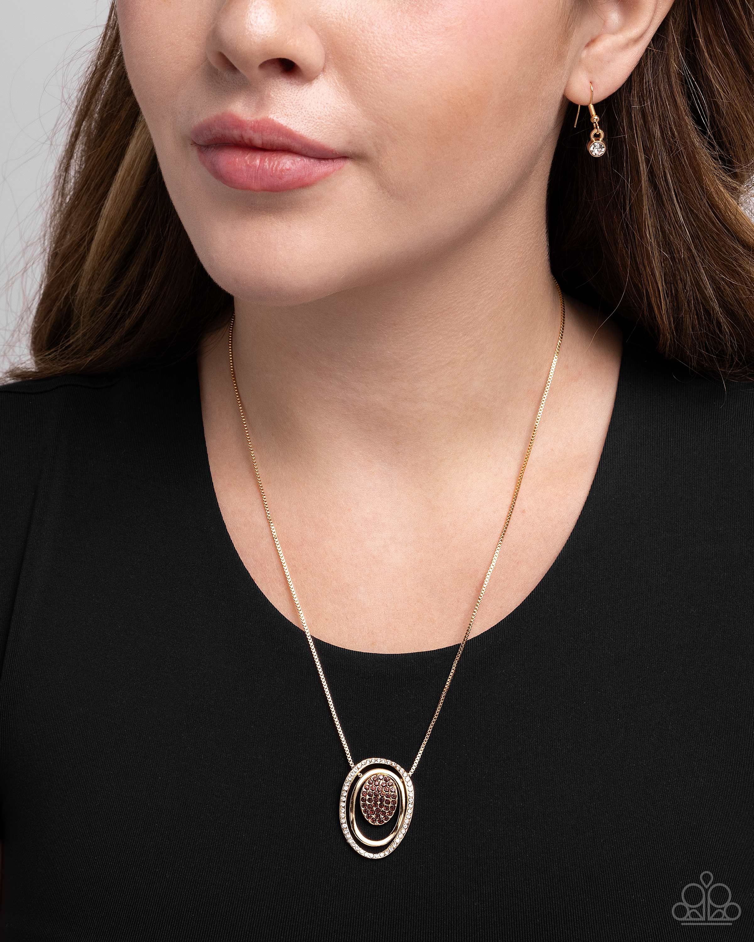 Glistening Grade - Brown - Rhinestone Gold Hoop Paparazzi Short Necklace