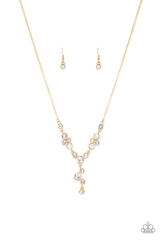 Toast to Perfection - Gold - White Pearl and Rhinestone Paparazzi Short Necklace
