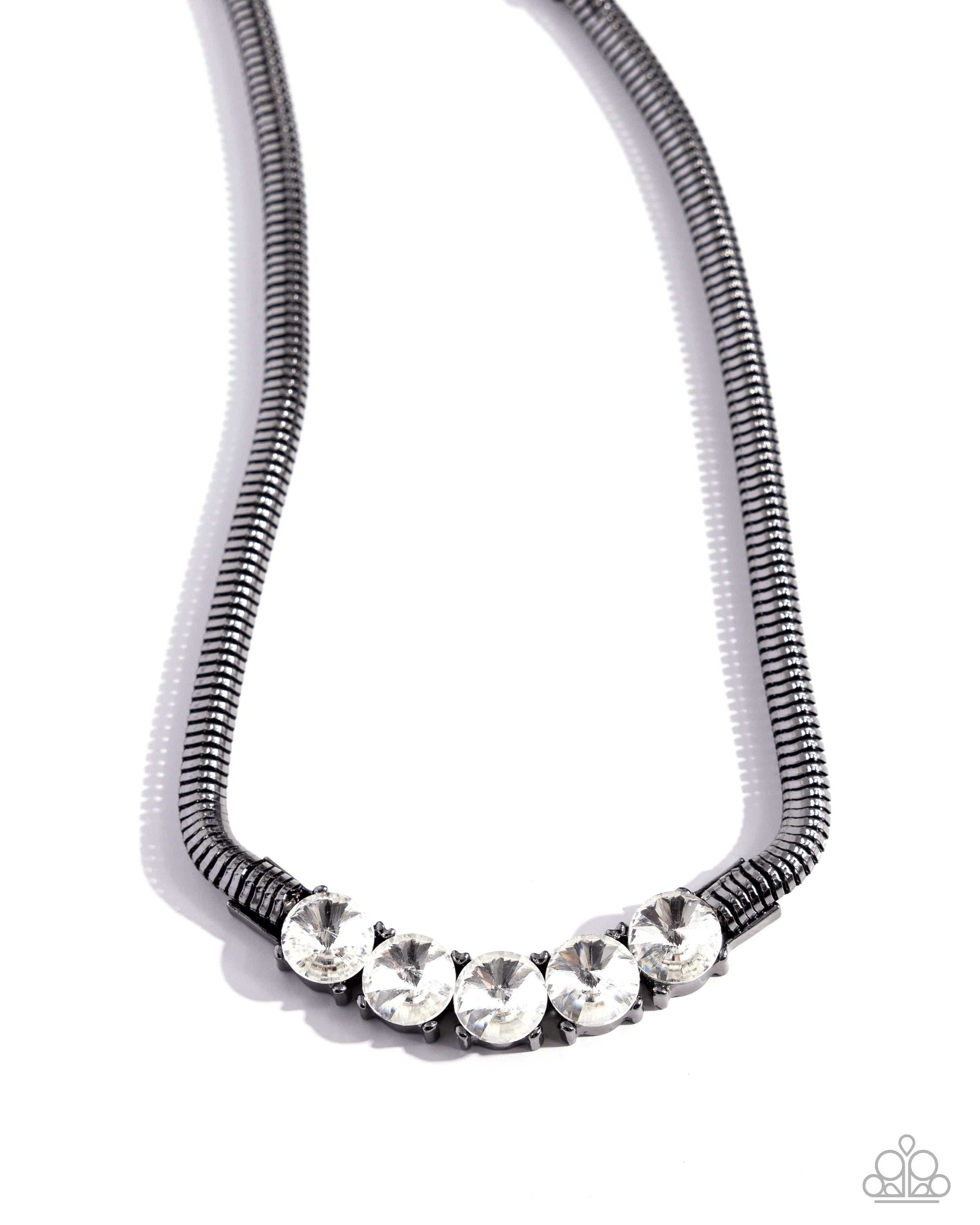 Musings Makeover - Black - White Gem Gunmetal Chain Paparazzi Short Necklace