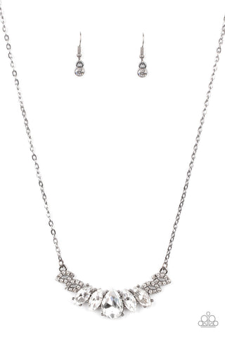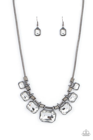 Unfiltered Confidence - Black - White Square Gem Gunmetal Paparazzi Short Necklace