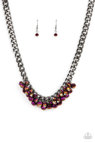 Galactic Knockout - Multi - Oil Spill Bead Gunmetal Chain Paparazzi Short Necklace