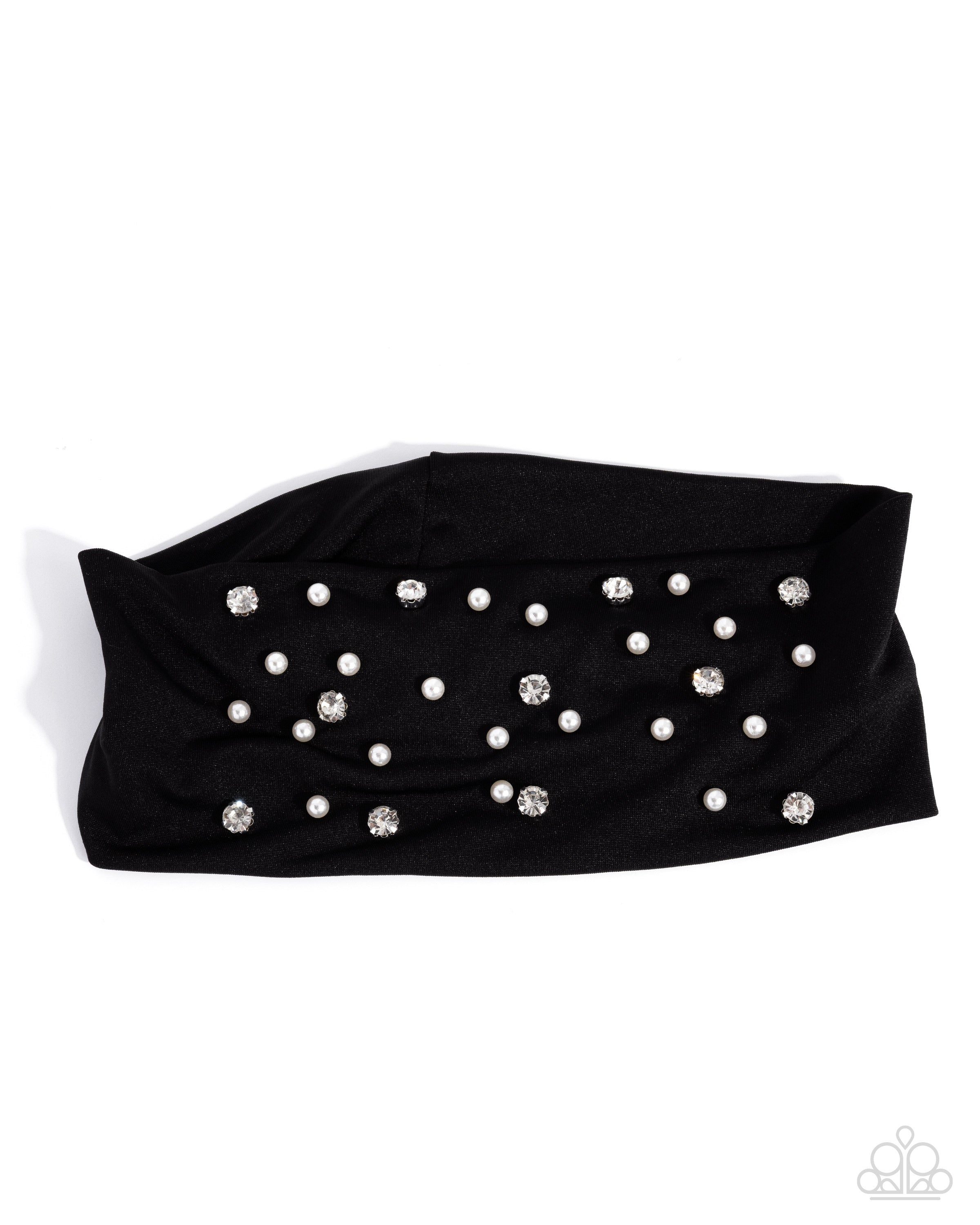 Effortless Energy - Black - White Pearl and Rhinestone Paparazzi Fabric Headband