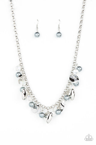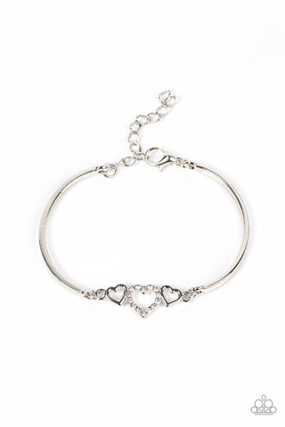 AMORE to Love - Black - White Rhinestone Gunmetal Heart Paparazzi Hoop Earrings