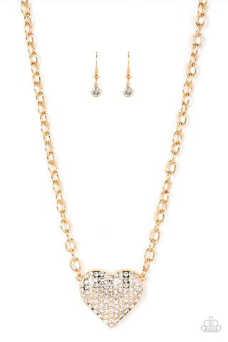Heartbreakingly Blingy - Gold - White Rhinestone Encrusted Paparazzi Short Necklace