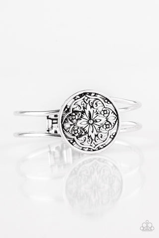 Caught in the Cross HEIRS - White - Bead and Rhinestone Paparazzi Hinge Bracelet