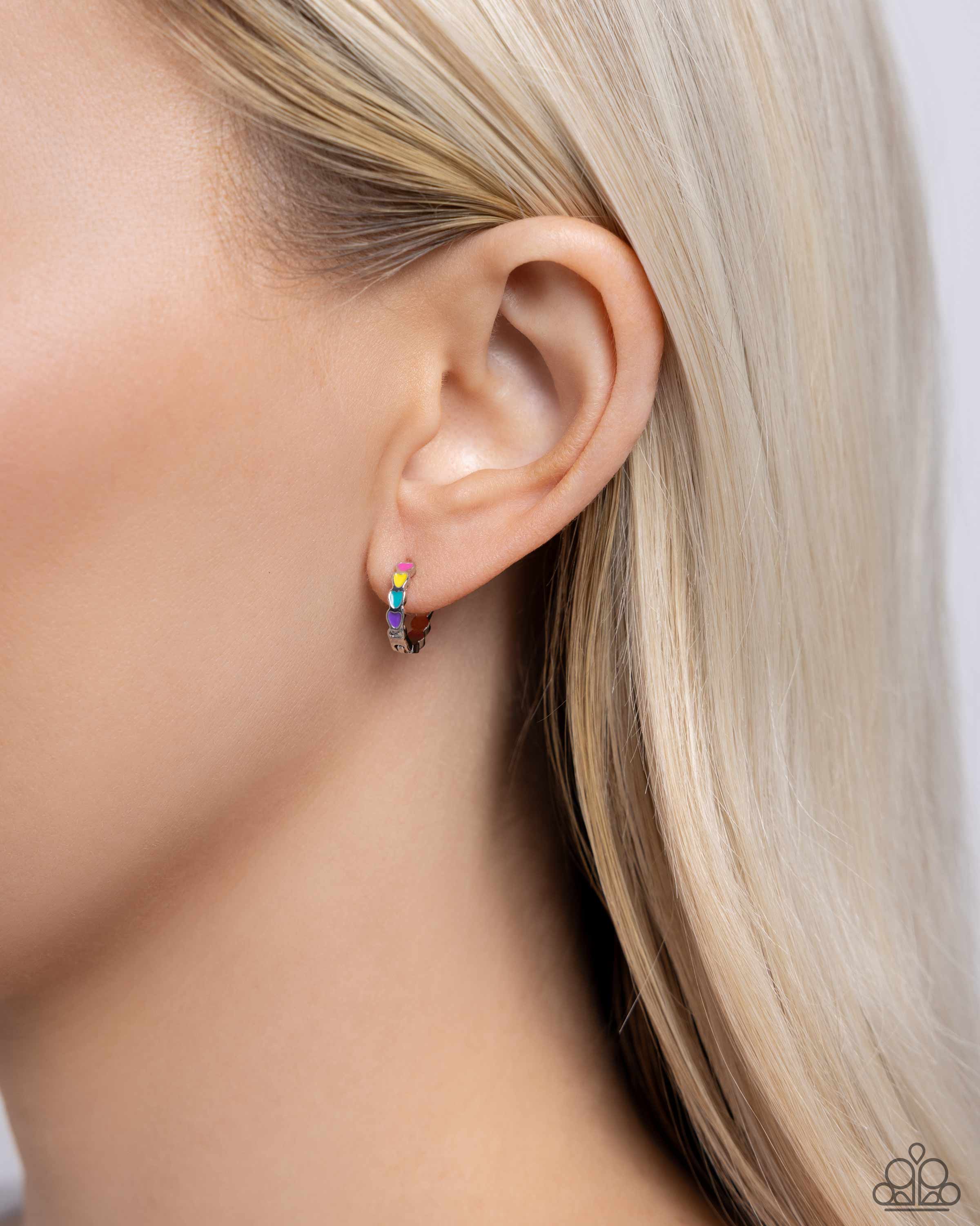 Delicate Dalliance - Multi - Colorful Heart Paparazzi Hinge Hoop Earrings