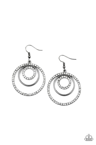 Universal Rehearsal - Black - Gunmetal Hammered Hoop Paparazzi Fishhook Earrings