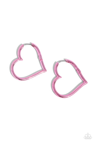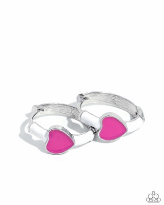 Open-Hearted Headline - Multi - Pink Heart White Hoop Paparazzi Hinge Hoop Earrings