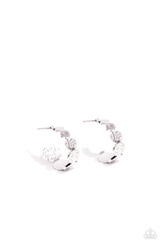 Spin Your HEELS - Gold - White Rhinestone Hammered Hoop Paparazzi Fishhook Earrings