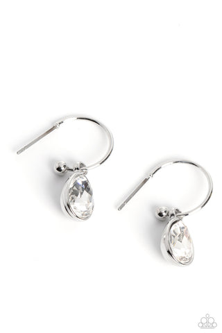 Call Me TRENDY - Pink - Painted Metal White Emerald Cut Gem Paparazzi Hoop Earrings