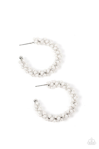 Colorfully Circulating - White - Seed Bead Hoop Layered Paparazzi Fishhook Earrings