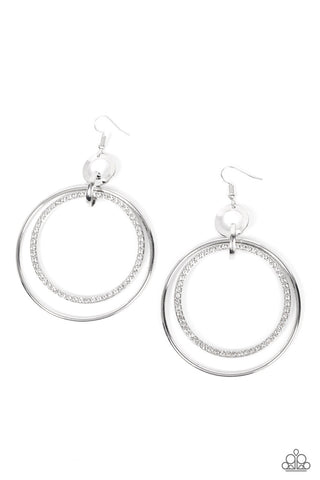 Fighting Fortune - White - Rhinestone Silver Chain Paparazzi Hoop Fishhook Earrings