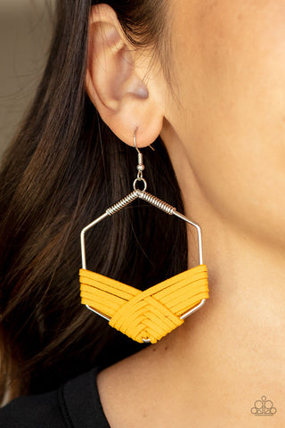 Suede Solstice Yellow Leather-Wrapped Silver Hexagon Paparazzi Fishhook Earrings
