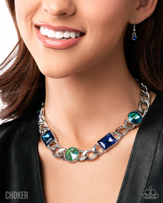 Love Hurts - Multi - Oil Spill Reversible Heart Paparazzi Short Necklace - Pink Diamond