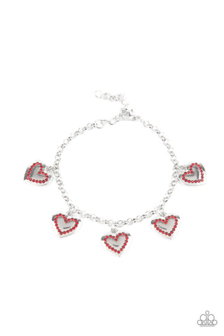 Matchmaker, Matchmaker - Red - Rhinestone Heart Charm Paparazzi Lobster Claw Bracelet