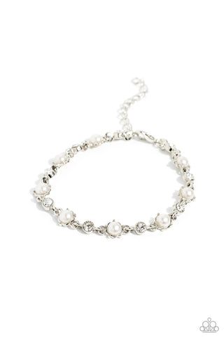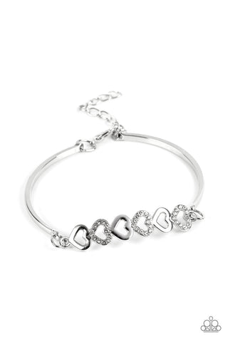 Attentive Admirer - White - Rhinestone and Silver Heart Paparazzi Lobster Claw Bracelet