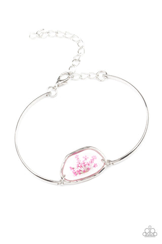 Floral Frenzy - Pink - Iridescent Rhinestone Flower Paparazzi Lobster Claw Bracelet