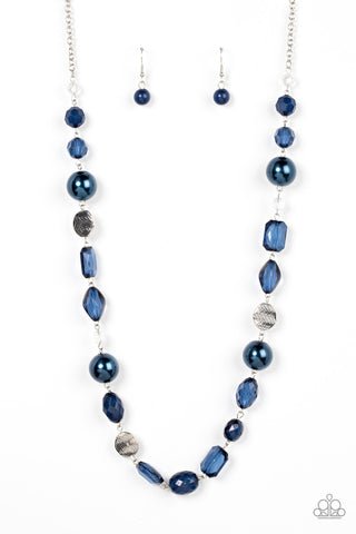 Caribbean Charisma - Blue - Iridescent Stone Wooden Bead Paparazzi Short Necklace