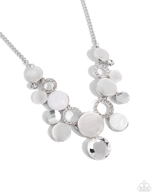 Radiant Review - Green - Cat's Eye Bead Silver Hammered Disc Paparazzi Short Necklace