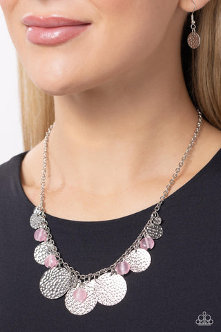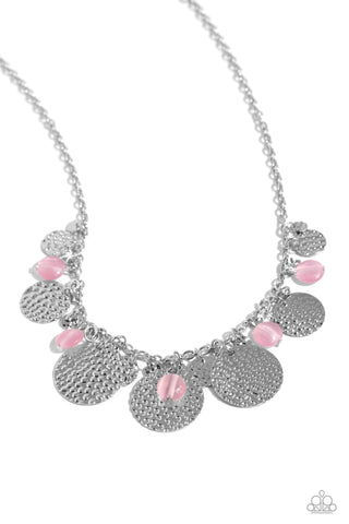 Radiant Review - Pink - Cat's Eye Bead Hammered Silver Paparazzi Short Necklace