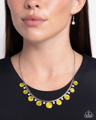 Meticulous Majesty - Yellow - Cat's Eye Stone White Rhinestone Paparazzi Short Necklace