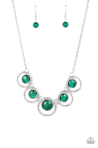 Elliptical Enchantment - Green - Circular Cat's Eye Stone Paparazzi Short Necklace