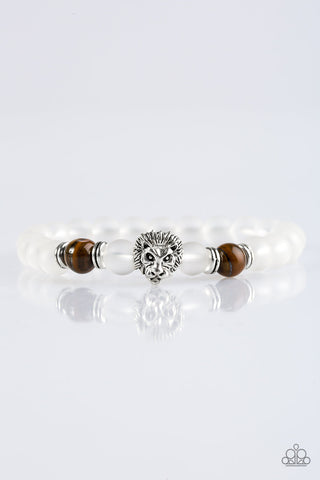 You Win My Heart - White - Rhinestone and Cat's Eye Stone Heart Paparazzi Cuff Bracelet