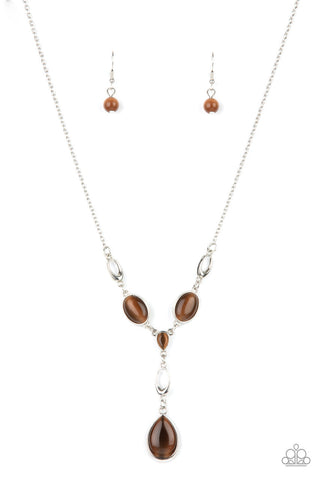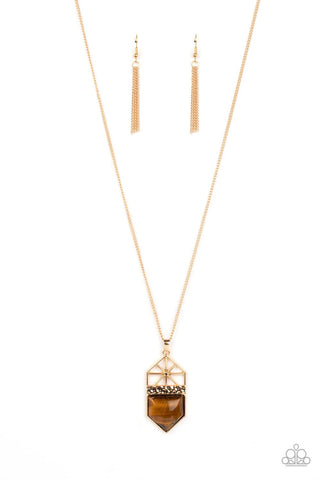 Trailblazing Talisman - Brown - Tiger's Eye Stone Pendant Gold Paparazzi Necklace