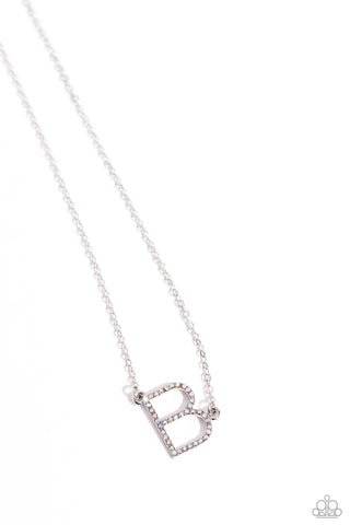 INITIALLY Yours - B - Multi Iridescent Rhinestone Letter Paparazzi Short Necklace
