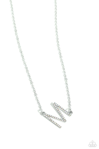 INITIALLY Yours - N - Multi Iridescent Rhinestone Letter Paparazzi Short Necklace