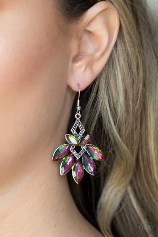Galaxy Grandeur - Multi - Oil Spill Marquise Cut Gem Paparazzi Fishhook Earrings
