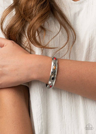 Big-Hearted Beam - Multi - Blue and Pink Rhinestone Heart Paparazzi Lariat Bracelet