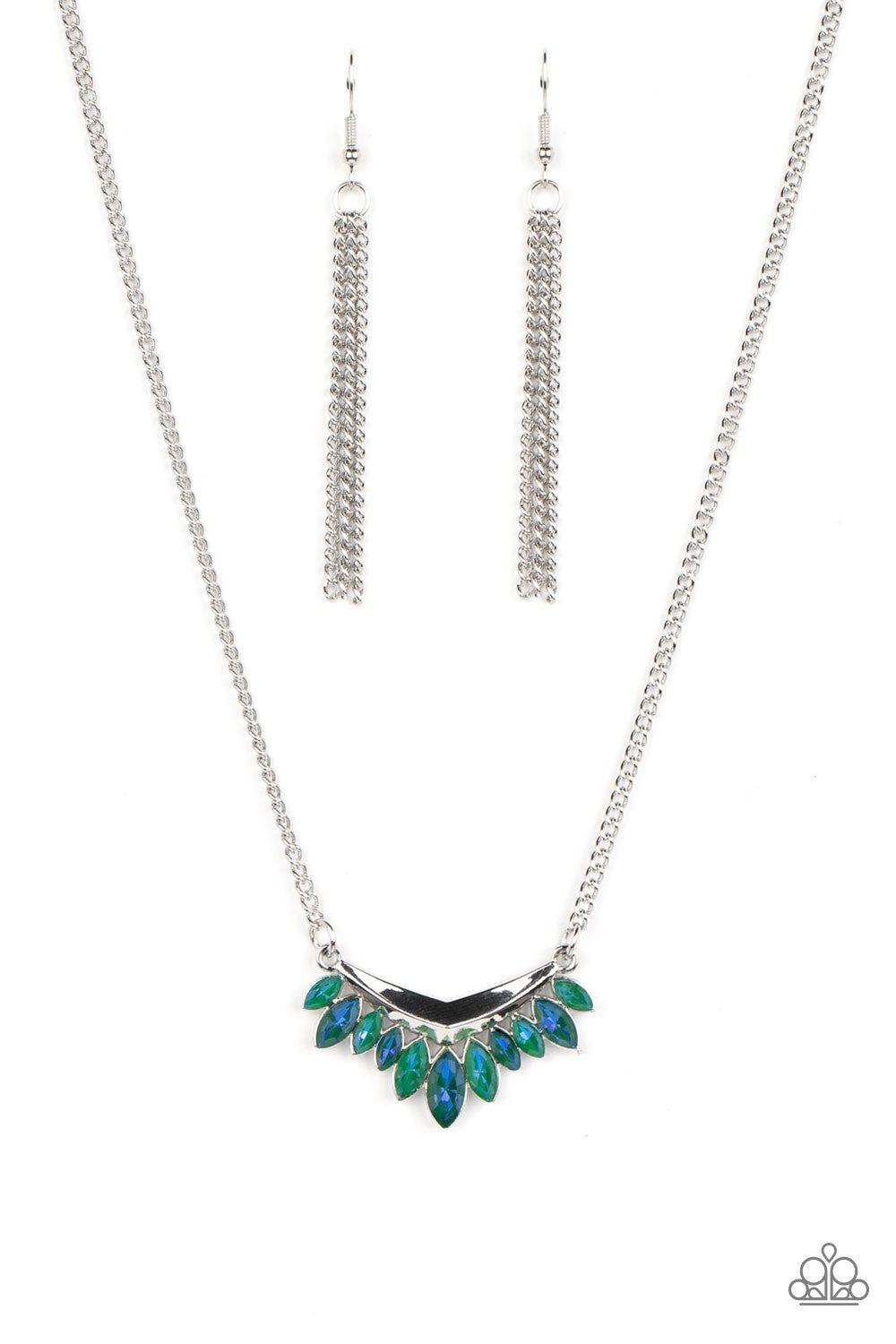 Flash of Fringe - Green - Marquise Cut Gem Paparazzi Short Necklace