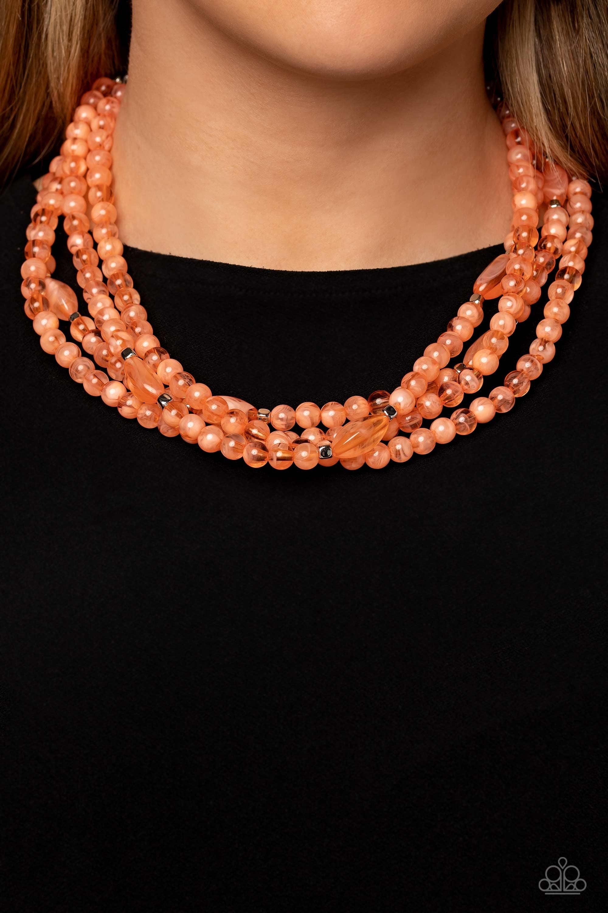 Layered Lass - Orange - Milky Bead Tiered Paparazzi Short Necklace